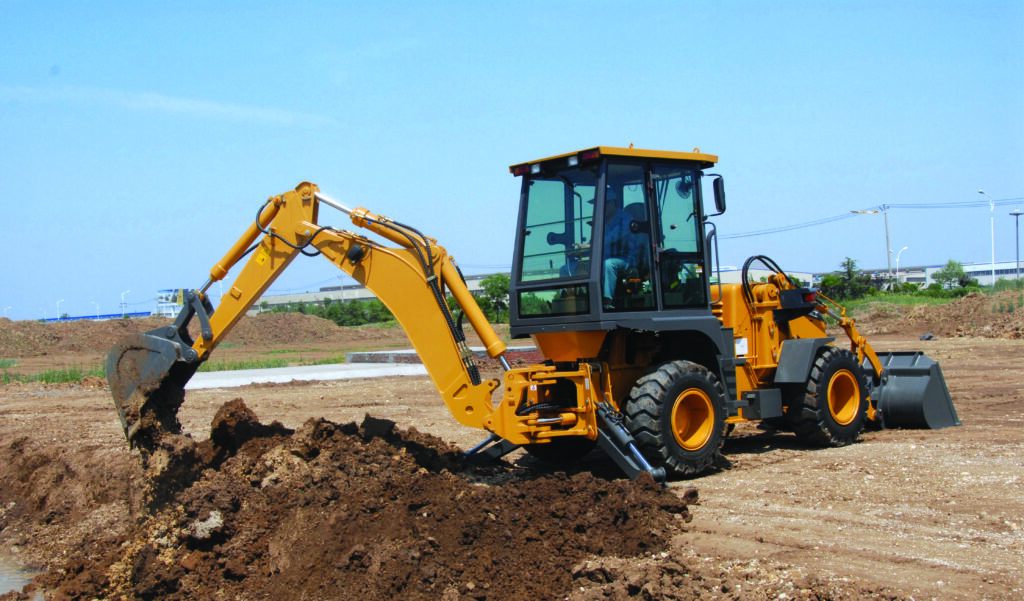 The backhoe working device is composed of the boom, stick, bucket, rocker, connecting rod, and hydraulic pipeline of the working device including boom cylinder, stick cylinder, and bucket cylinder.